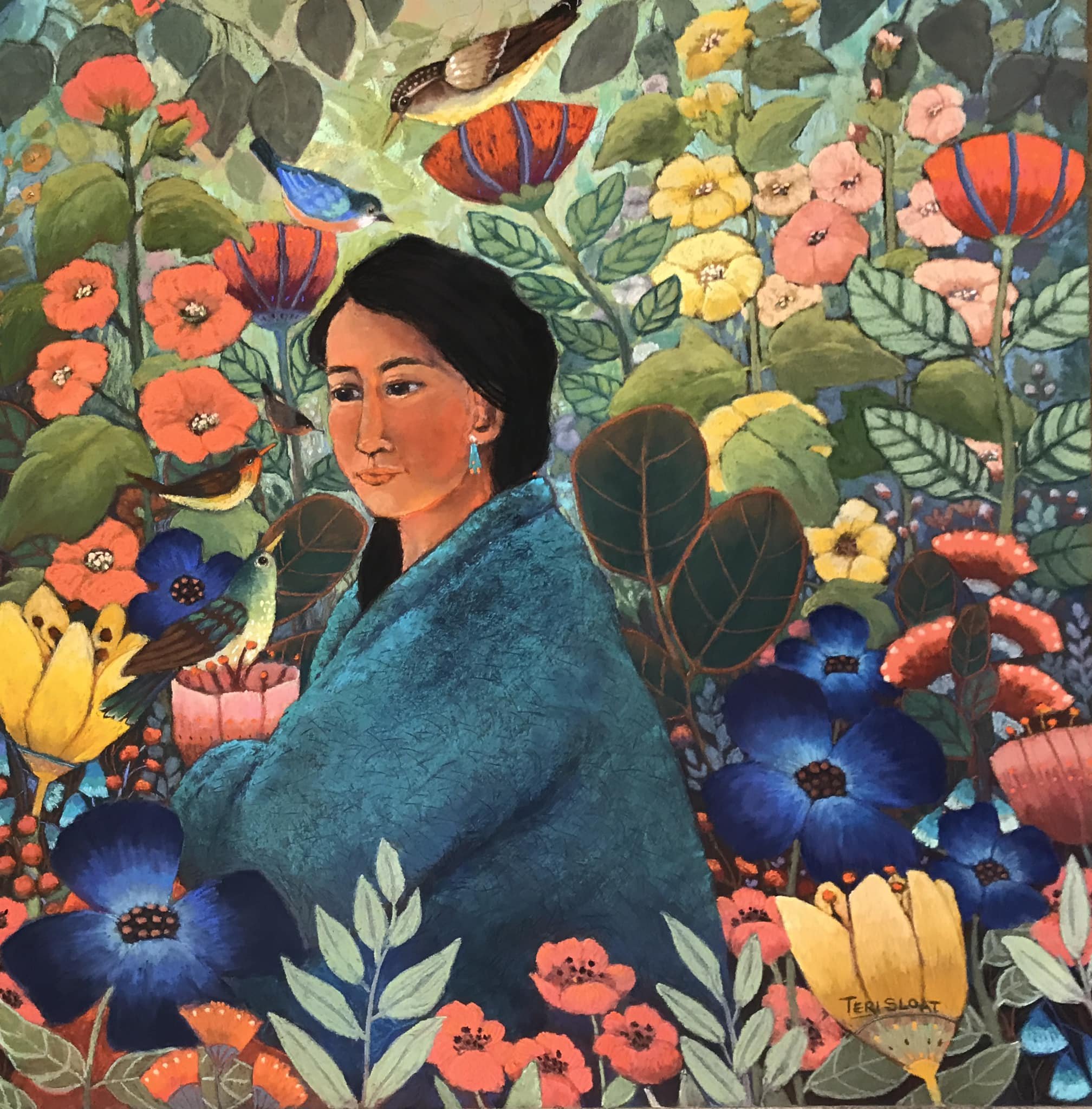An expert conveyor of both the representational and the imagined, Teri has a strong sense of how to impact the viewer with design elements, composition, color theory, and what she defines as an essential to her work, story telling. Narratives are Teri's forethought to lay out the foundation of her work. Teri says: "Writing has taught me to paint pictures with words; painting has taught me to tell my stories with shapes and colors and composition.... My art has always been about telling a story. Whether I am looking out at the landscape around me as I set up my easel, or glancing inward on the visual narrative spinning in my mind, I am always telling myself a story."